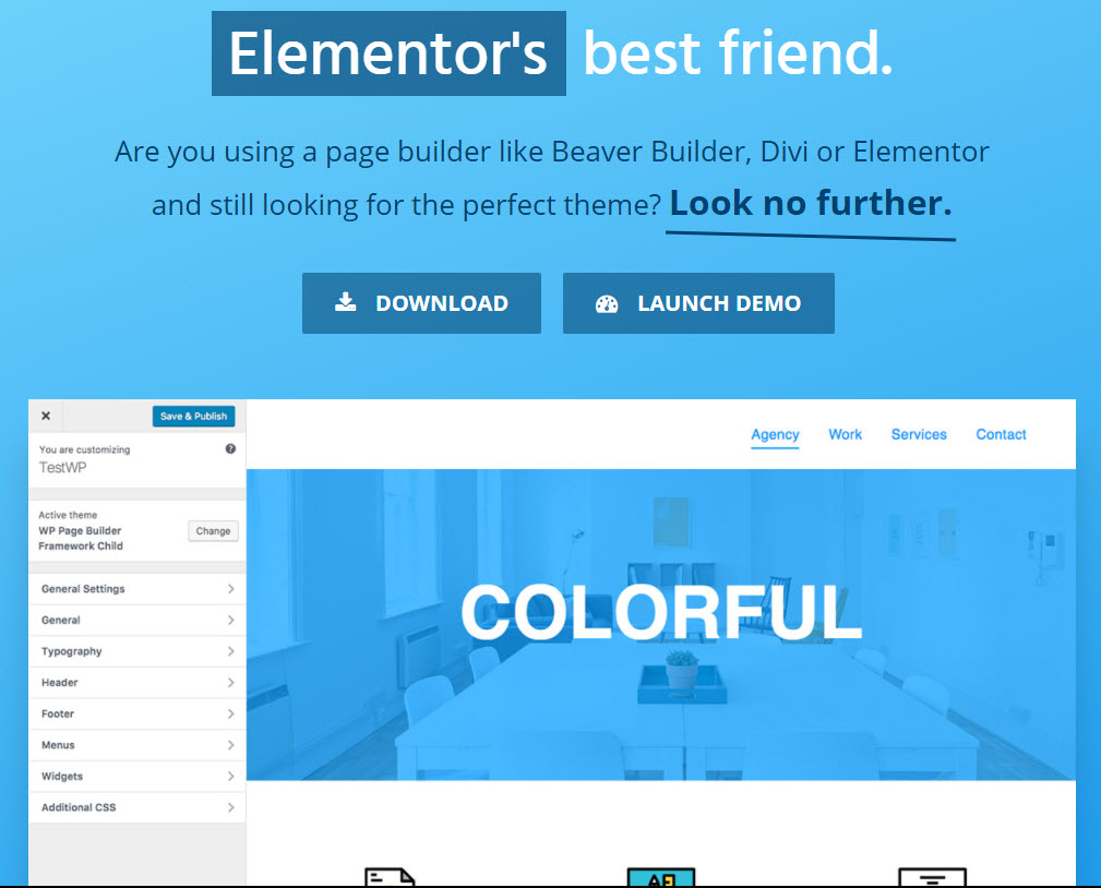 Page builder Framework, è un tema sviluppato appositamente per i page builder come Elementor.