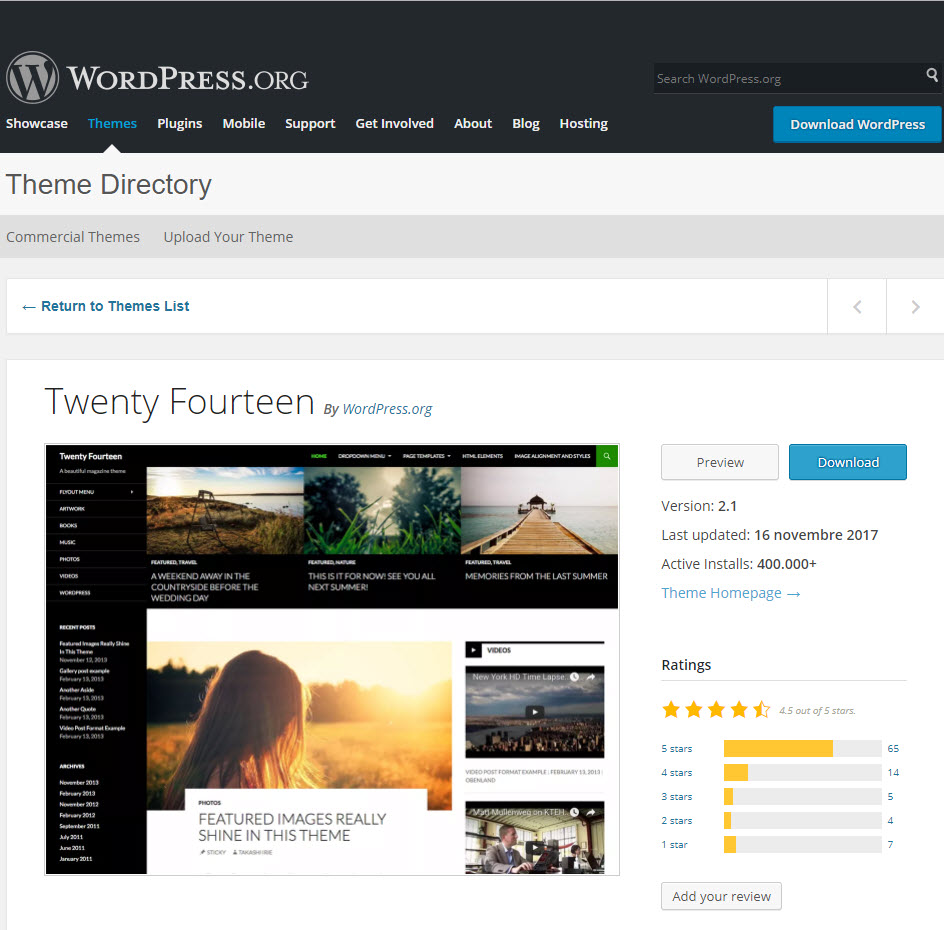 Lo puoi trovare nella repository dei temi della tua installazione di WordPress, o lo puoi scaricare direttamente da WordPress.org