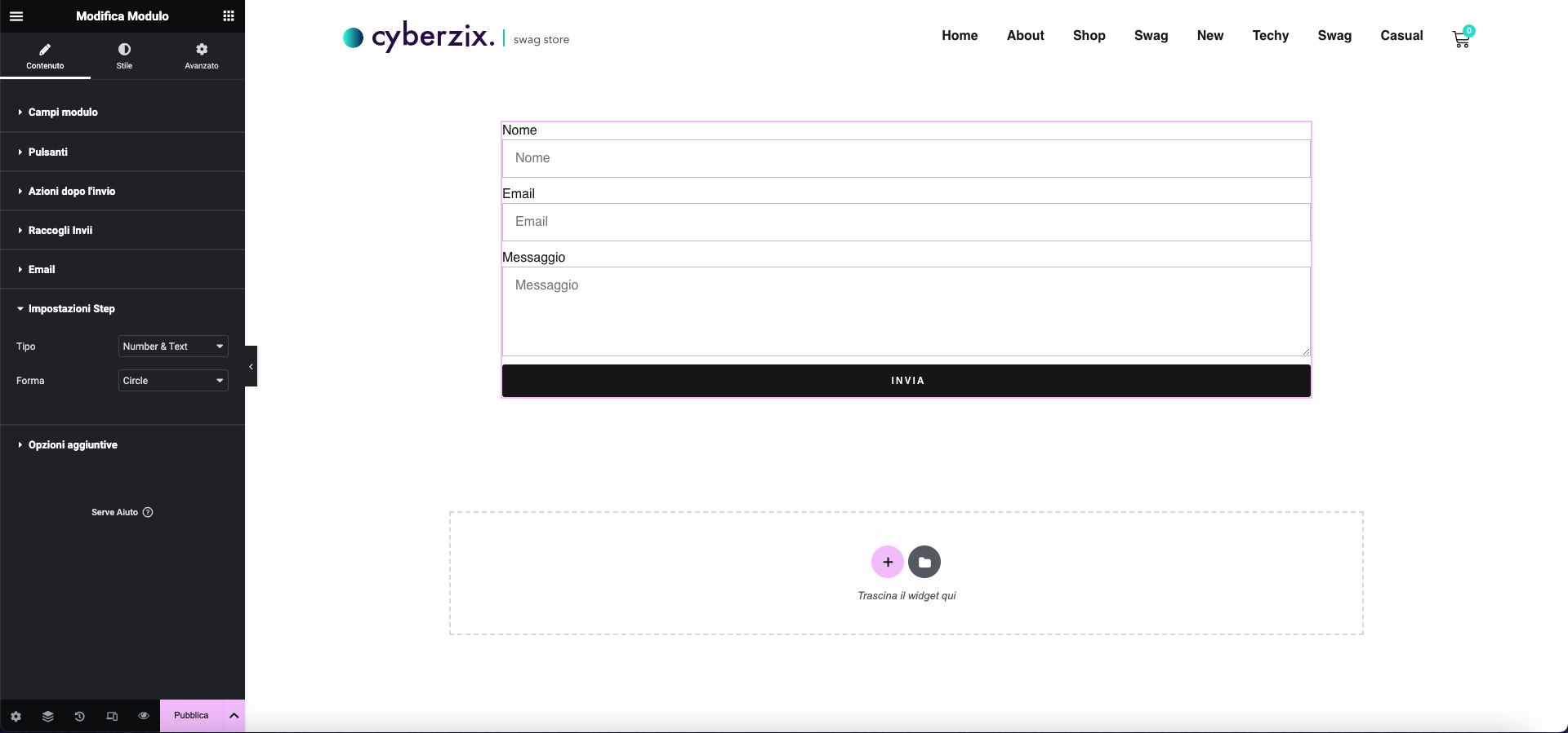 Elementor, utilizza il sistema drag and drop, per inserire i moduli nelle sezioni, ti basta semplicemente trascinarli.
