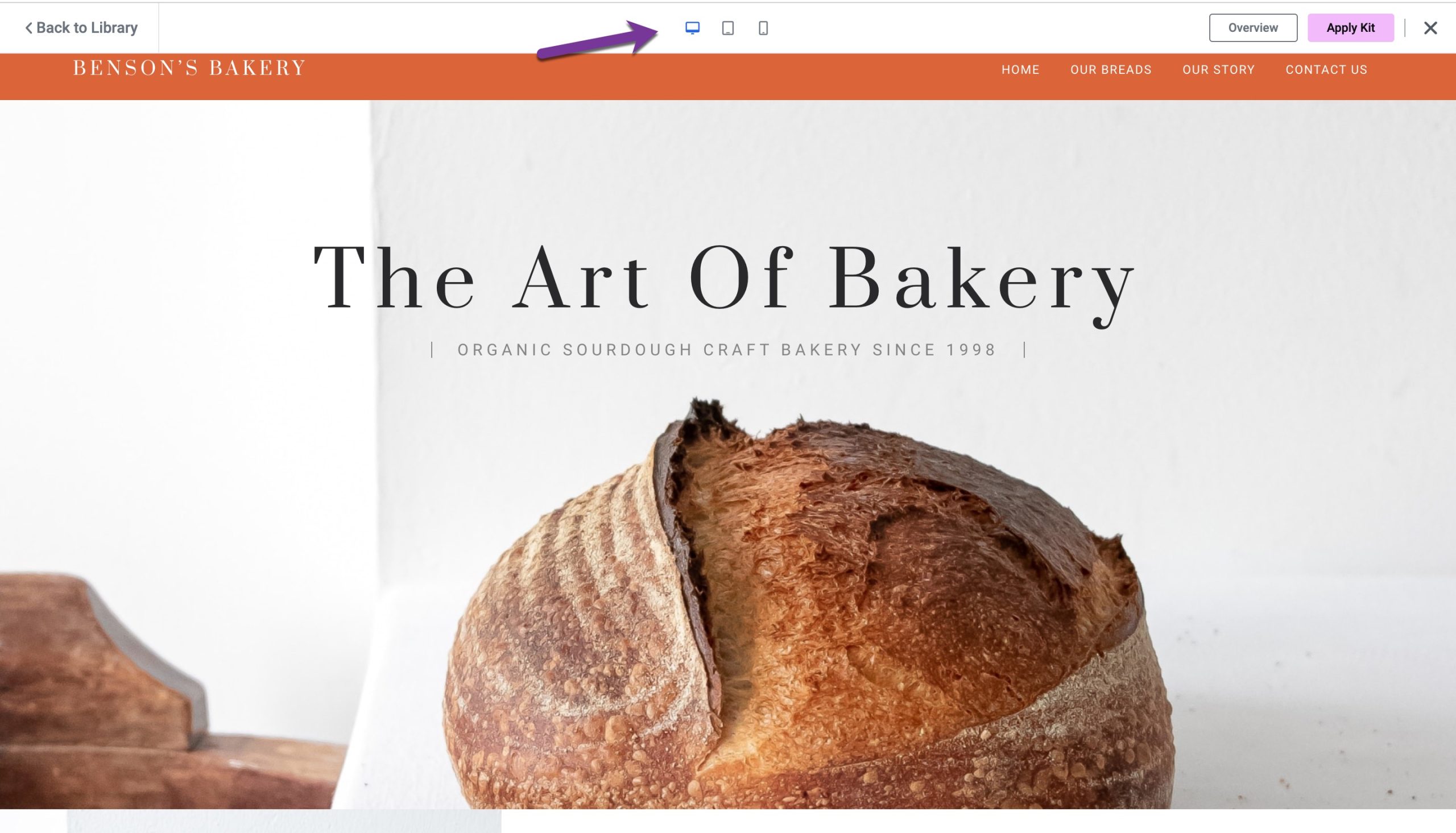 Una volta individuato il kit da importare, puoi visualizzare la demo del kit scelto. Puoi visualizzare anche il rendering dei modelli “Desktop”, “Mobile” e “Tablet” per la visualizzazione su dispositivi mobili.