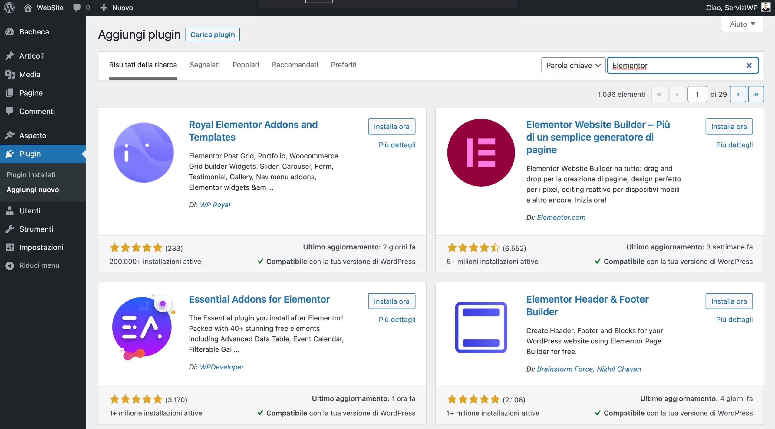 Installare Elementor è molto semplice, basta seguire questi 3 semplice passi: