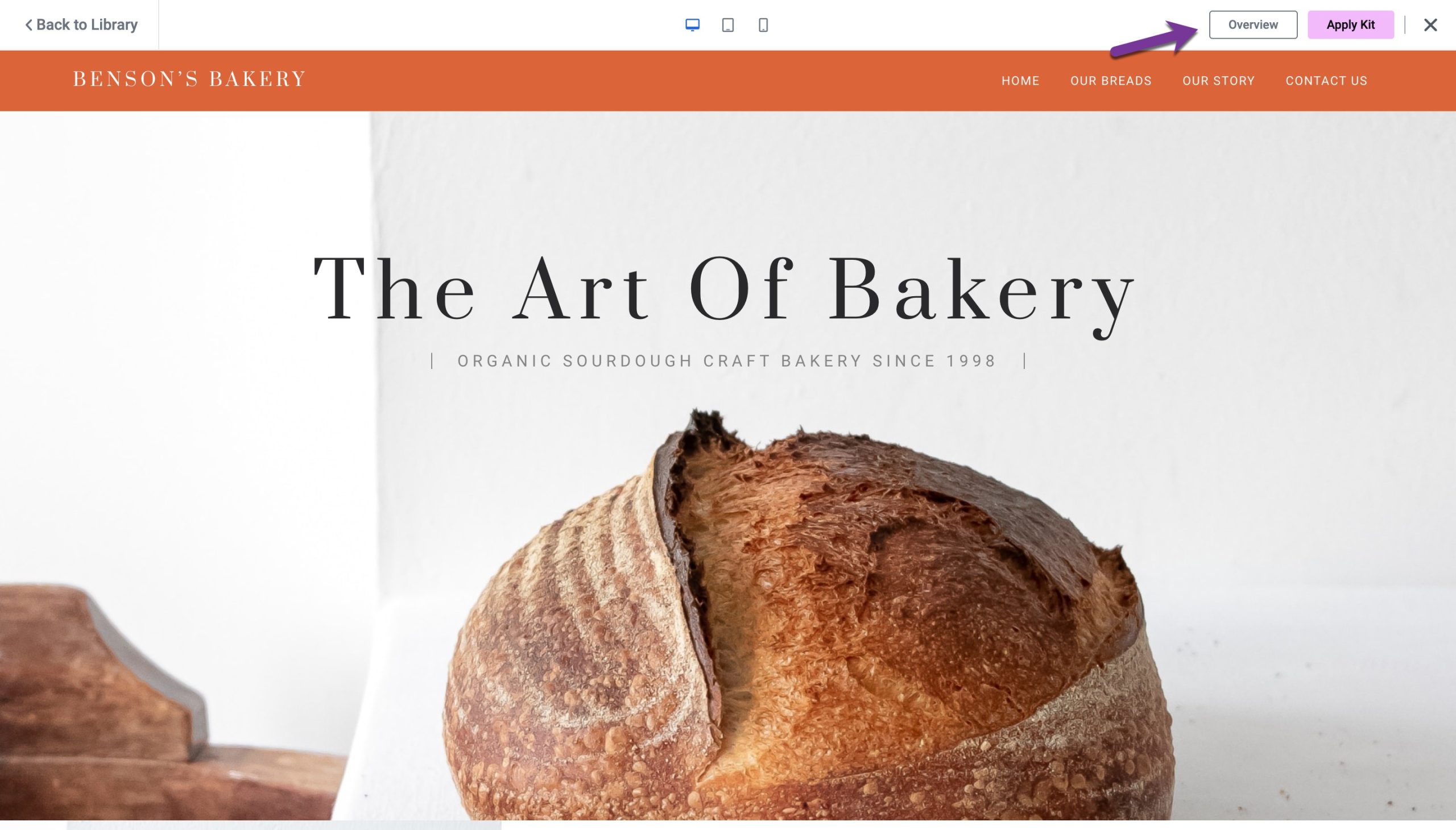 Per visualizzare il contenuto del kit che verrà importato nel tuo sito web, puoi cliccare nel tab in alto a destra “Overview“.