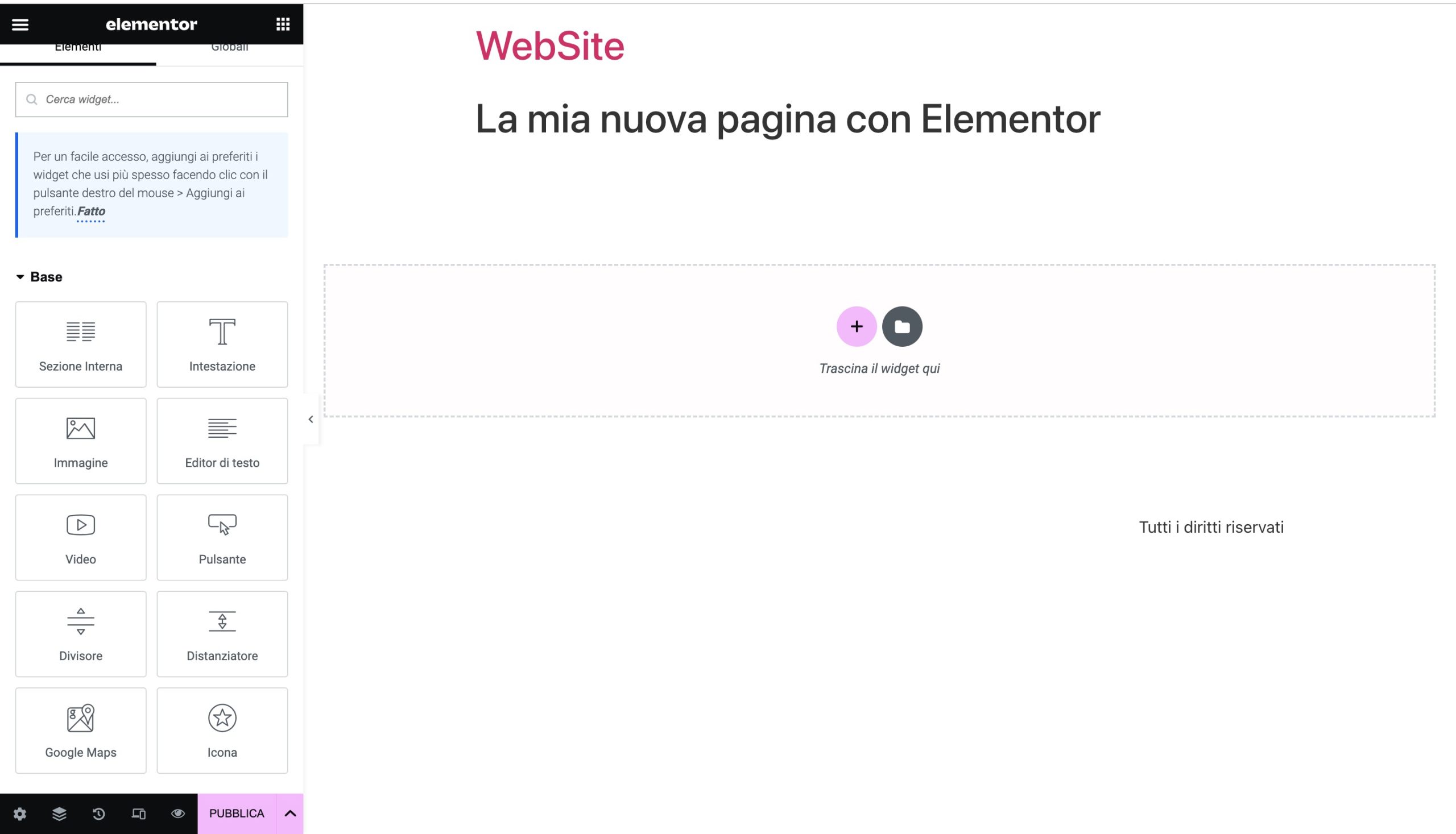Clicca sul tasto blu, e in pochi secondi verrà caricato il Live Page Builder di Elementor.
