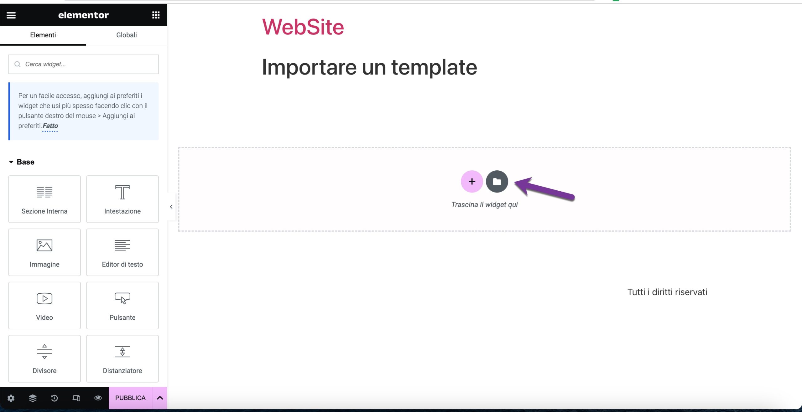 Nei passi successivi, ti spiego come si usa Elementor, come importare un template singolo e come importare un template completo dal Kit library di Elementor senza passare dal wizard.