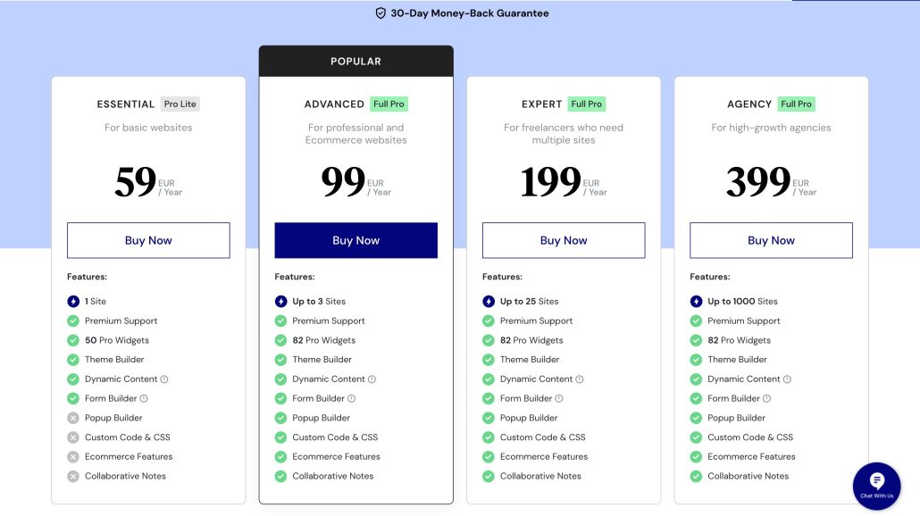 - Allo scadere di un anno, puoi continuare ad utilizzare Elementor Pro, ma per ricevere update e supporto dovrai rinnovare la licenza.