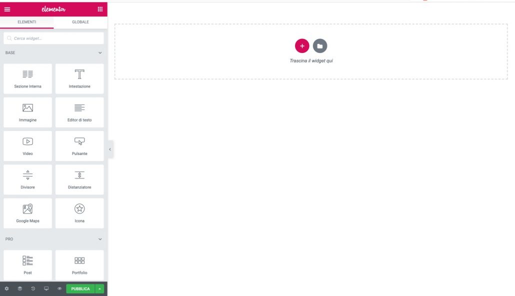 Ha creato una pagina bianca, sulla quale intervenire direttamente con Elementor. Tutti gli stili, i colori, la tipografia, gli spazi interni ed esterni, gli elementi grafici vengono gestiti direttamente dal page builder.