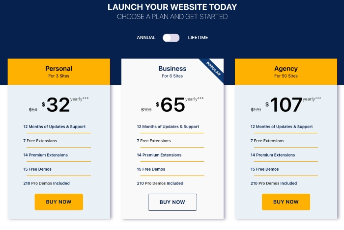 Puoi acquistare OceanWP Pro in tre diverse versioni: